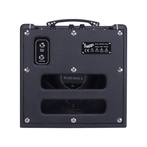 The front panel of the Blues King 8 offers Volume, Tone and Master Volume controls, along with a footswitchable Boost function that adjusts the gain of the tube preamp. The Blues King 8 also features a Line Output that allows this combo amp to double as an outboard tube distortion unit feeding another amplifier or DAW. The Line Output in the Blues King 8 is conveniently located before the Master Volume, allowing you to crank the preamp gain while blending in the sound of the on-board 8” speaker to taste.