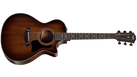 The mahogany-top cutaway Grand Concert 322ce will appeal to rootsy fingerstyle players craving a comfortable playing experience. The 24-7/8-inch neck makes fretting and bending strings easier, while the blackwood/mahogany wood pairing yields a surprisingly warm and dynamic tonal response for a smaller body, bolstered further by this year’s addition of V-Class bracing. Taylor's new bracing pattern, which enables the soundboard to produce a more orderly response to the string vibration, translates into greater volume and projection with longer sustain, enhancing this guitar’s already warm, sweet response. A smooth shaded edgeburst adds a tasteful vintage look that complements the rich-grained mahogany top. Appointments include a black pickguard, Italian acrylic small diamond fretboard inlays, black binding with crisp white top trim, 3-ring rosette, and satin finish. The guitar comes equipped with a Venetian cutaway and Expression System 2 electronics for organic plugged-in acoustic tone.
